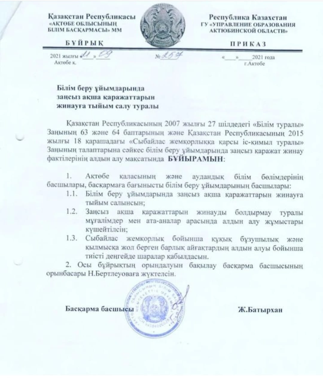 | 1 | Сыбайлас жемқорлыққа қарсы іс-қимыл туралы заң | Docx |