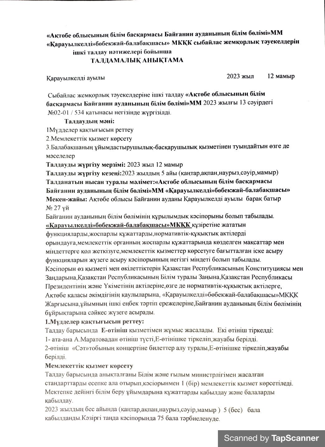 | 1 | 2023 жылға арналған "Cыбайлас жемқорлыққа қарсы күрес" жоспары | |