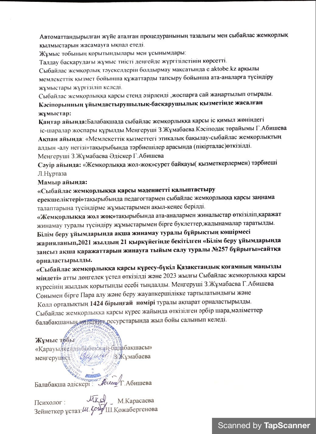 | 2 | 2024 жылға арналған "Cыбайлас жемқорлыққа қарсы күрес" жоспары |